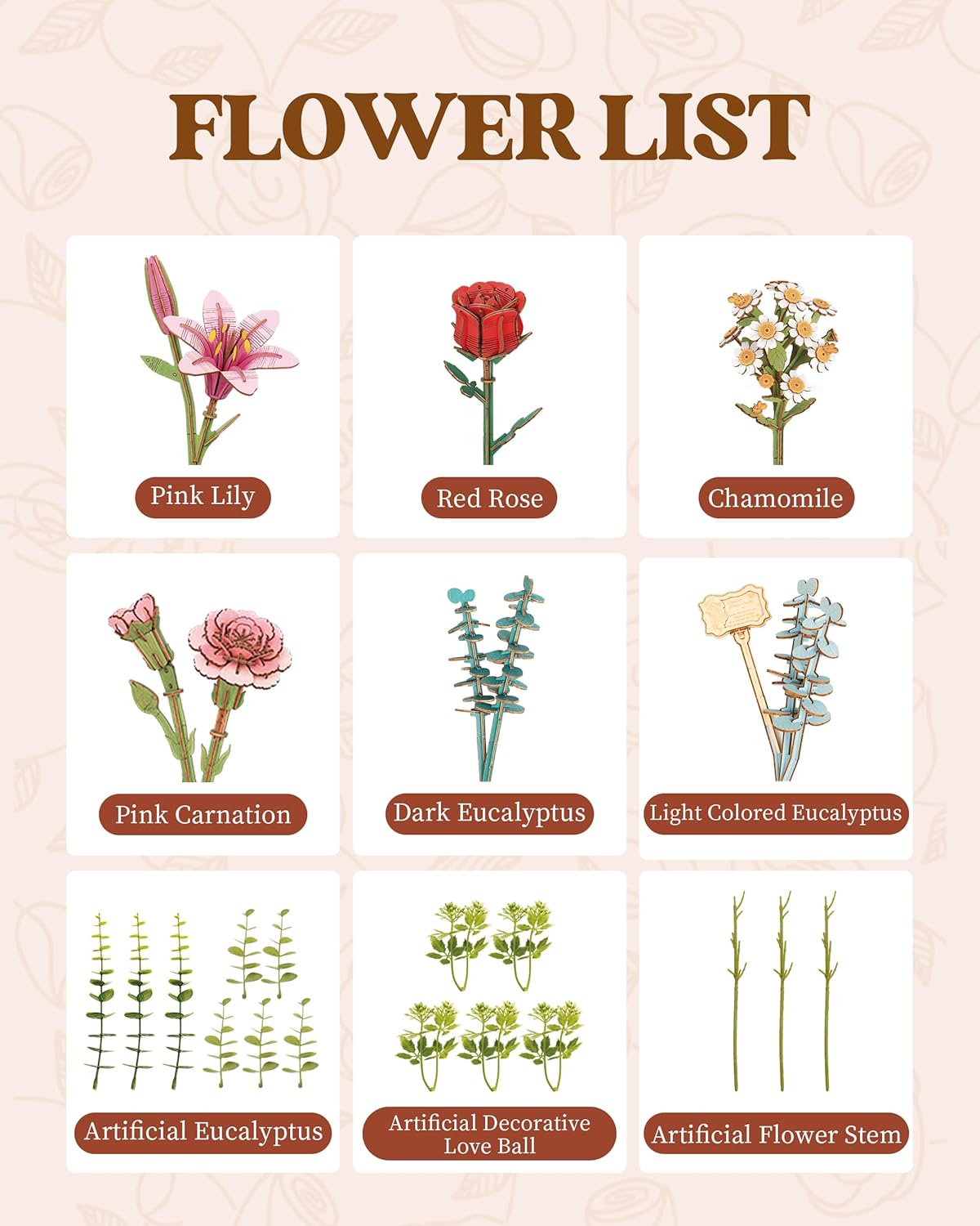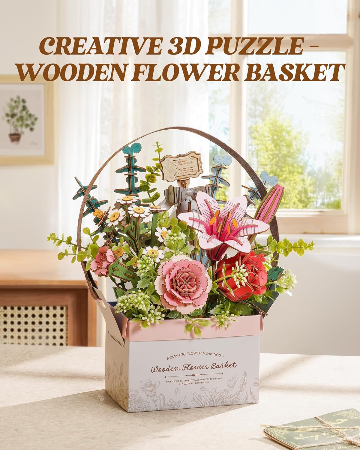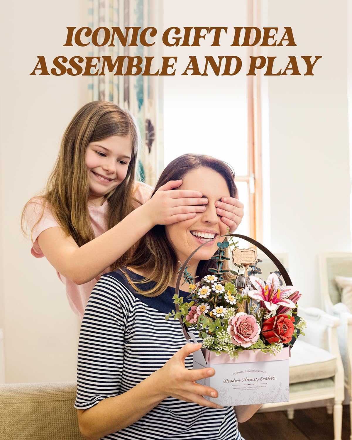 This charming bouquet set will take you into a world full of creativity. This set includes a variety of vibrant flowers and a chic flower basket. Once assembled, it becomes a charming decorative piece that will brighten any room, and the petals will never fade.