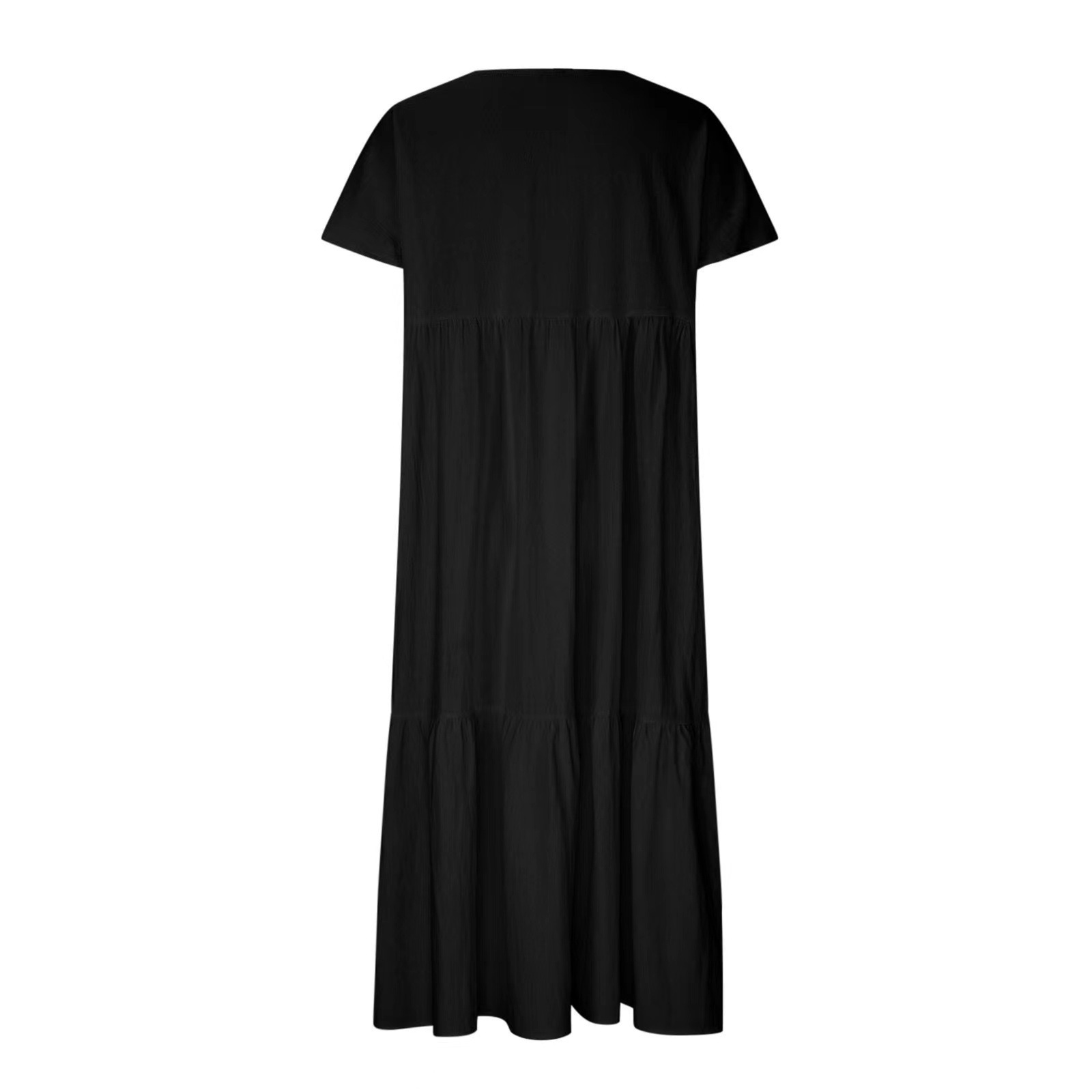 Round Neck Short Sleeve Cotton And Linen Mid-length Dress