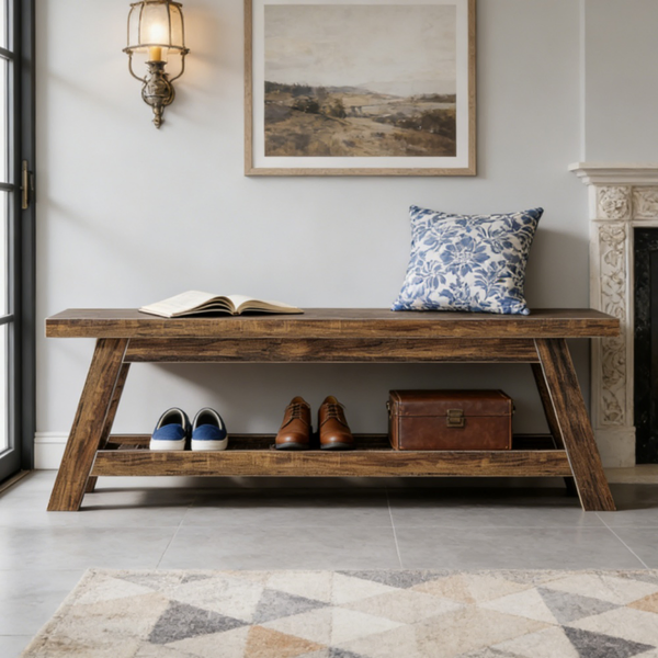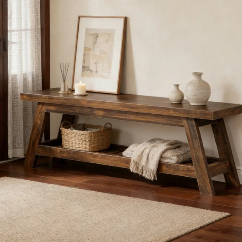 Elegant Wood Tone - Upgrade your entryway with our stylish wooden bench, featuring a warm wood-tone finish. Its timeless design complements any decor, adding both functionality and aesthetic appeal to your space.