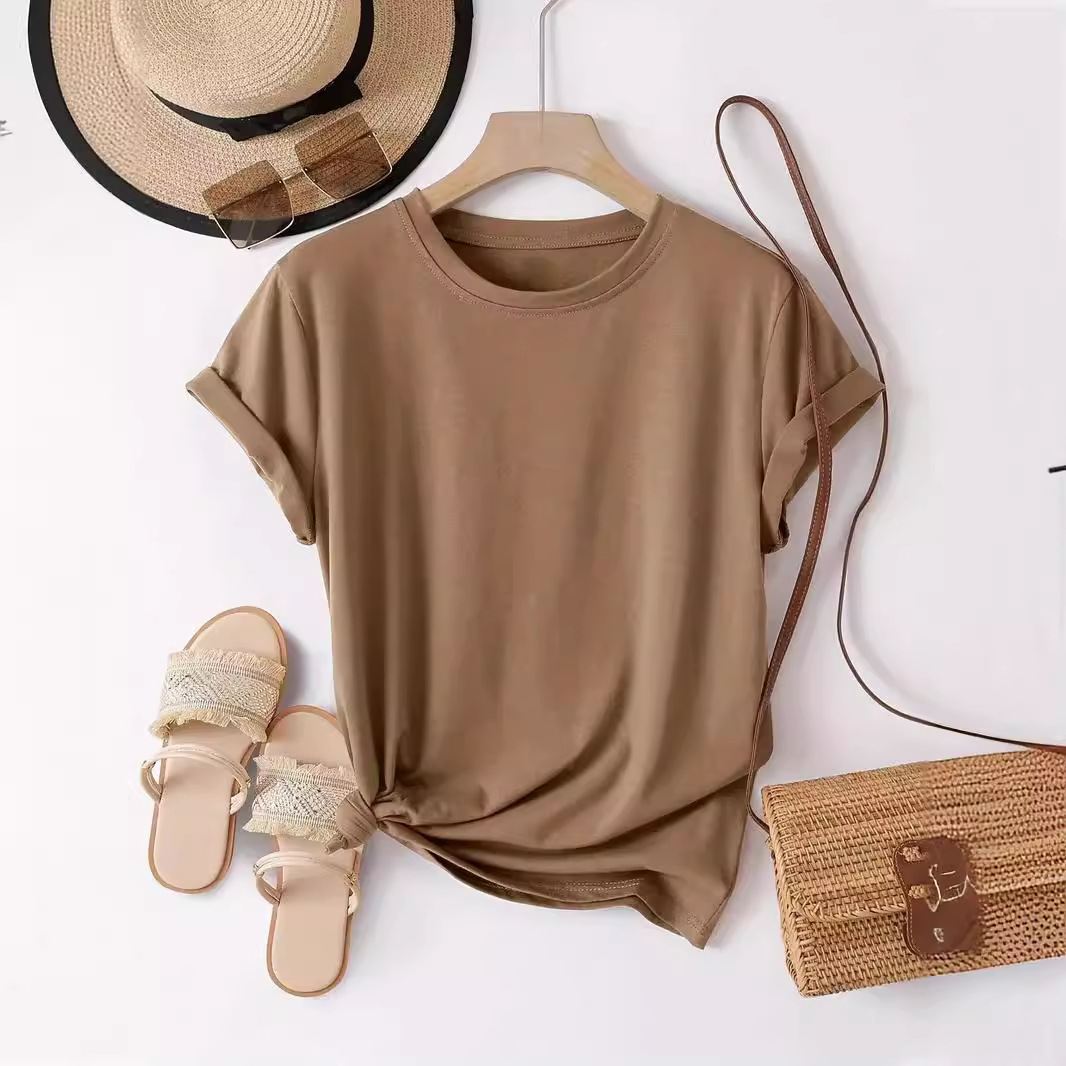 Solid Color Spring And Summer Round Neck Women's T-shirt