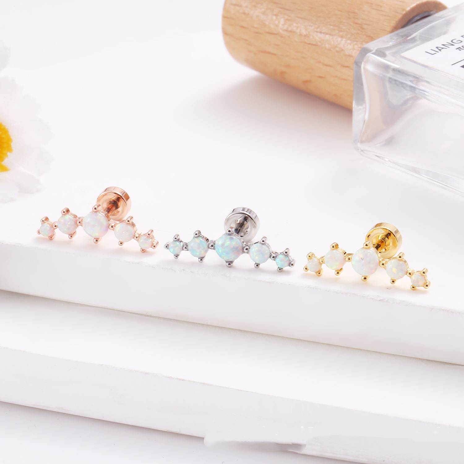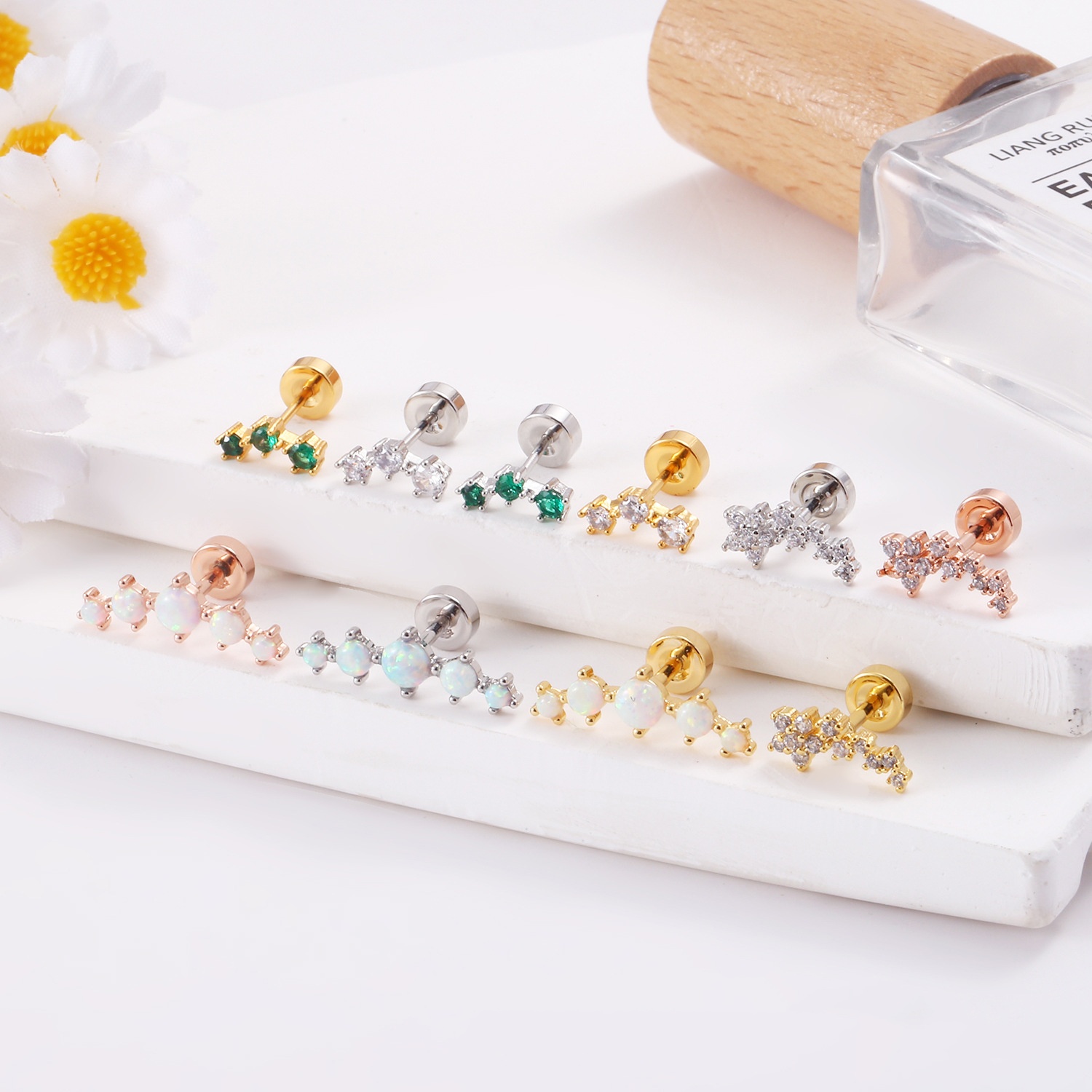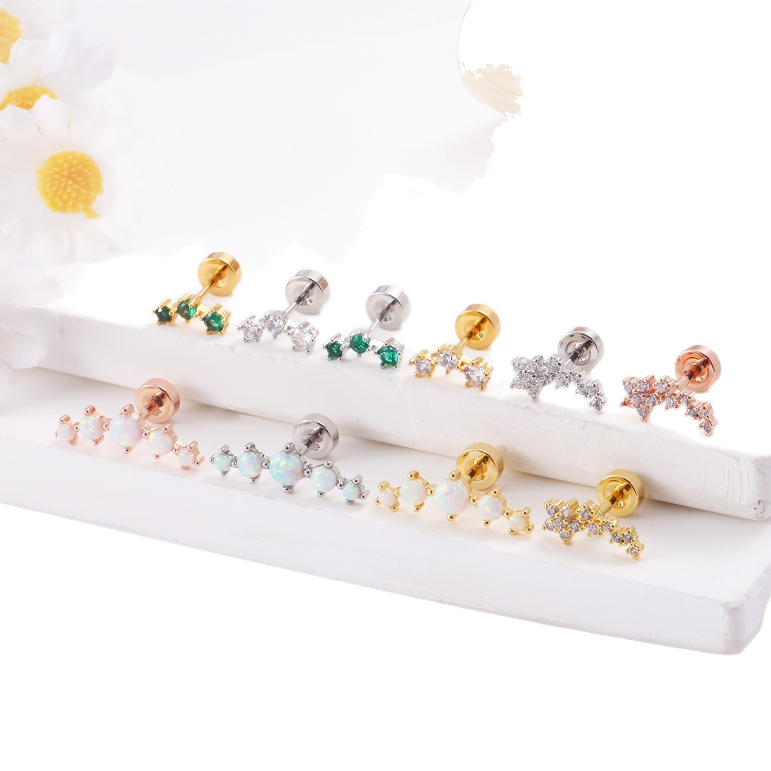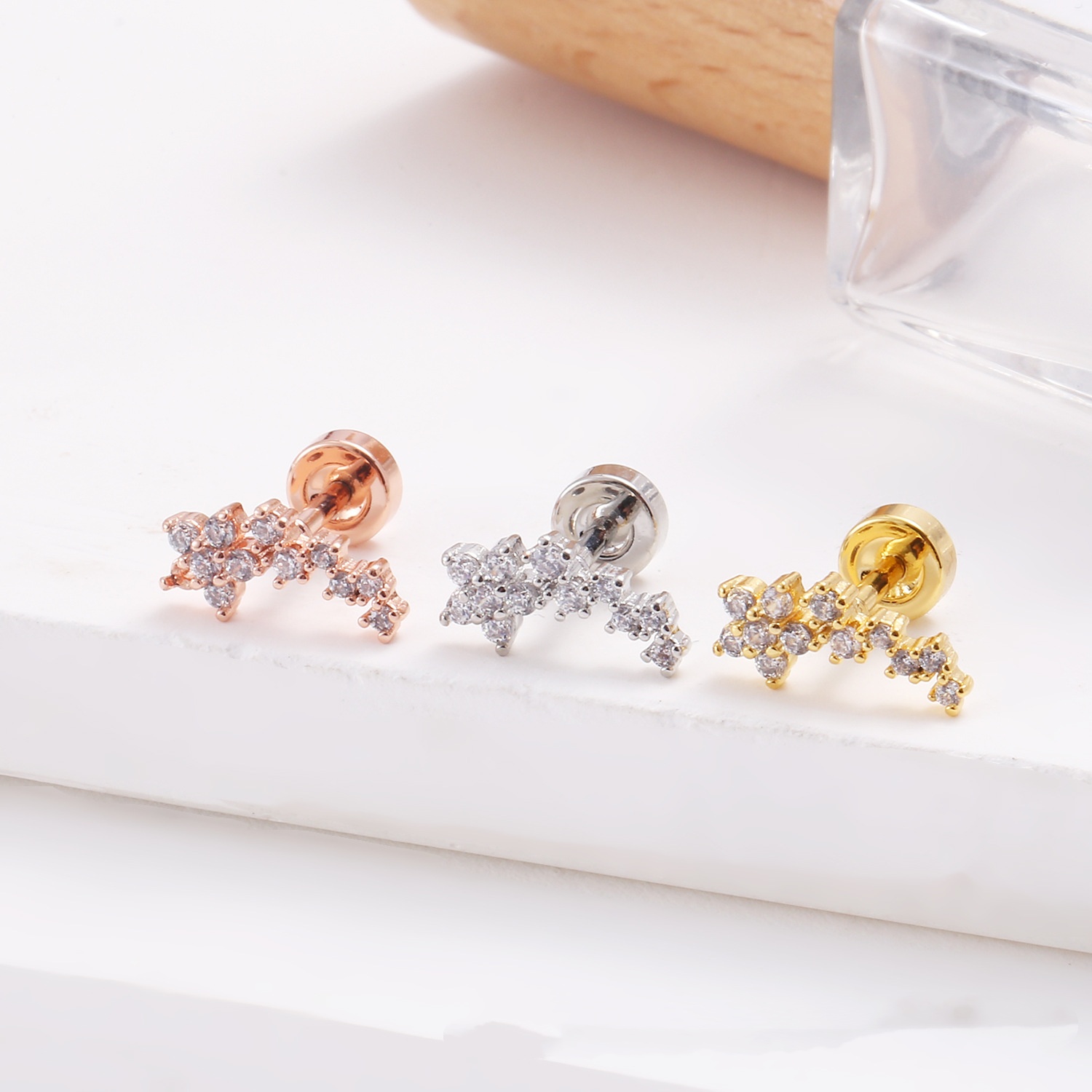 Stainless Steel Lip Studs With Heart-shaped Zircon Earrings