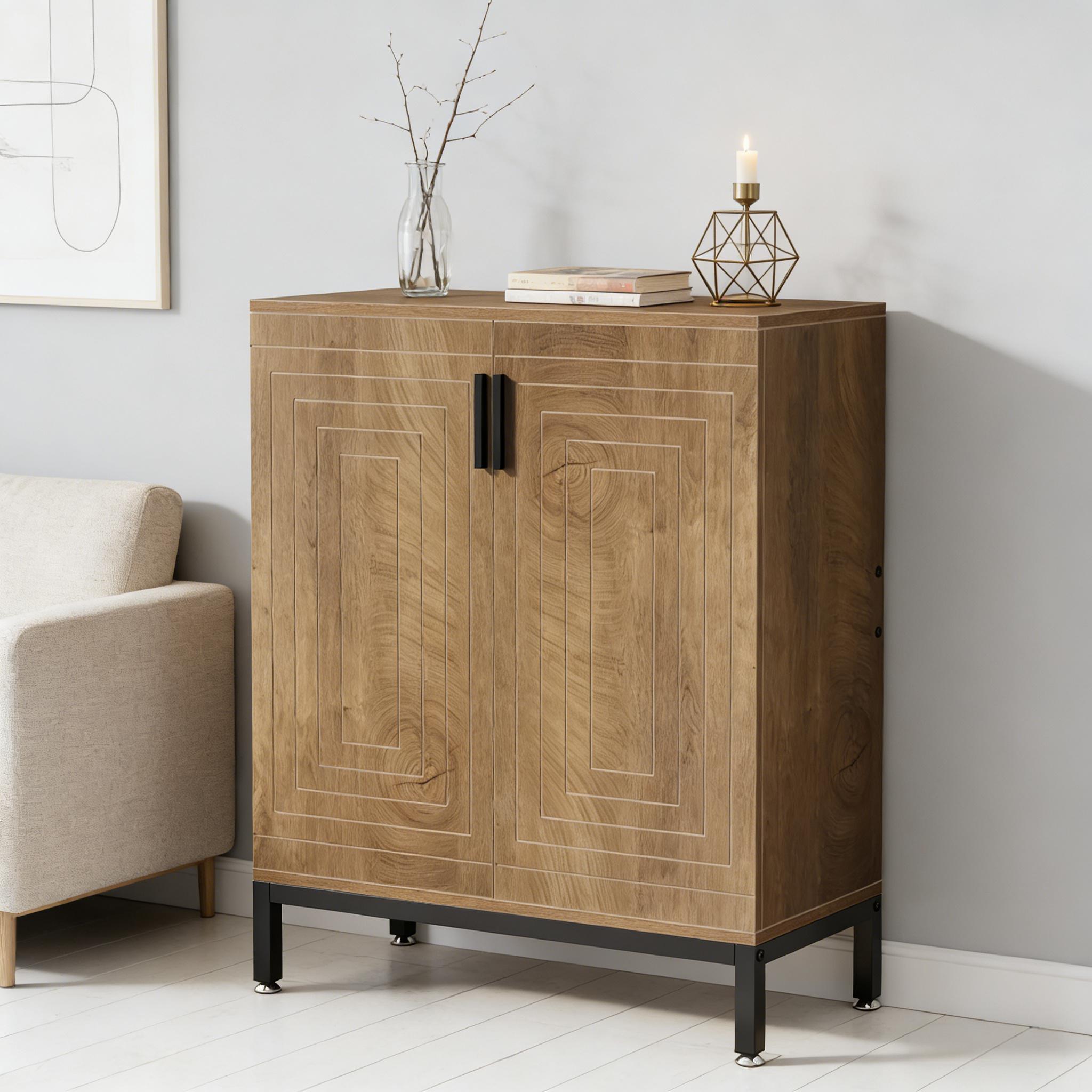 Important Reminder!!! 1) Attention: All products in our store do not support Canada self pickup ordering. Please do not create shipping labels for Canada. Our American products do not support self pickup to Canada 2)We do not ship to Alaska, Hawaii, US protectorates (e.g., Puerto Rico), P.O. boxes, or APO/FPO addresse 3)We don’t accept non-defective remorse returns Stylish and Functional - Our freestanding 5 tier shoe rack features geometric doors and five inside shelves. The legs and finish create a sleek, minimalist design, perfect for your bedroom or entryway. Space-efficient - Store up to 15-20 pairs of shoes behind two concealed doors. The tabletop is ideal for decor or essentials, and the bottom offers additional shoe storage. Versatile - The removable shelves can be modified to accommodate shoe heights or large size shoes, doubling as a large storage cabinet. High metal legs make cleaning underneath easier. Durable - Measuring 31.5" W x 15" D x 30.3" H, this 20 pair shoe storage cabinet is space-saving and sturdy, crafted from durable MDF and metal for long-lasting use. The warm, golden door handle is designed to prevent scratches, with adjustable feet to avoid wobbling. Simple Assembly - Includes tools and instructions for easy assembly (two people with an electric driller recommended).