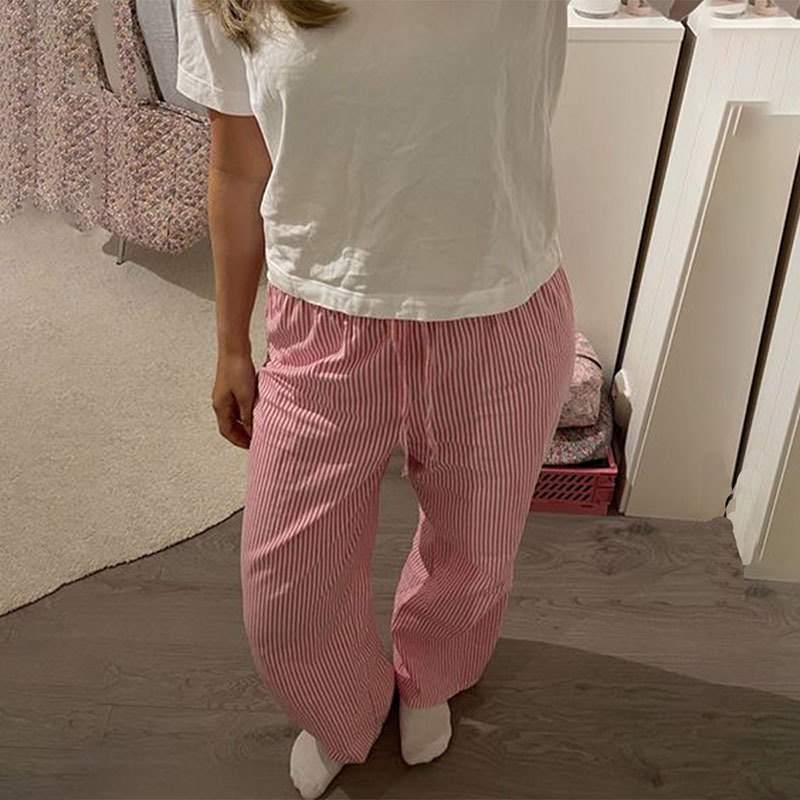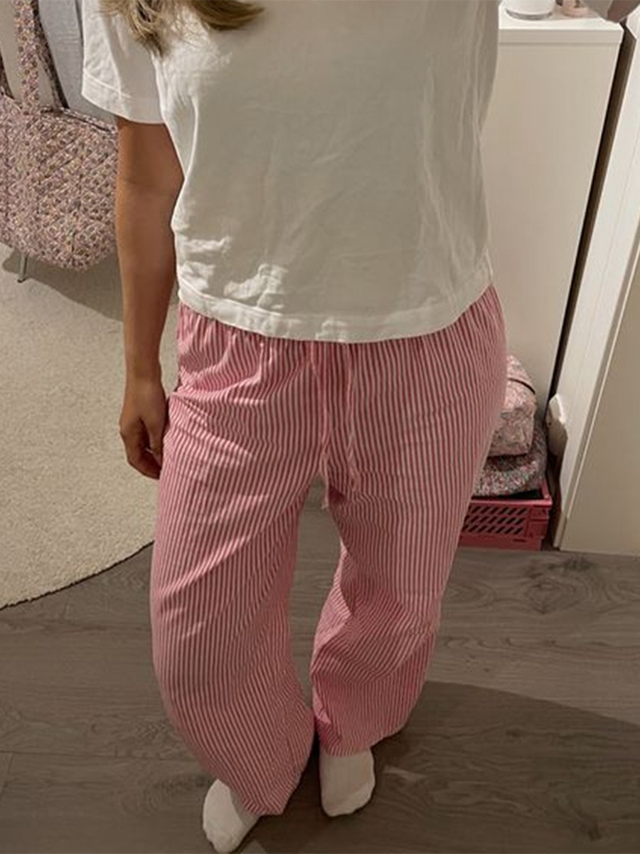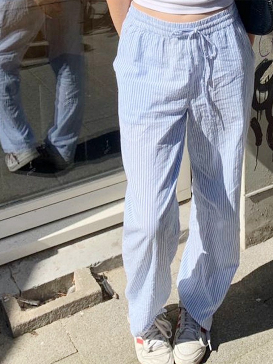 Striped Printed Elastic Waist Drawstring Pocket Straight Casual Trousers