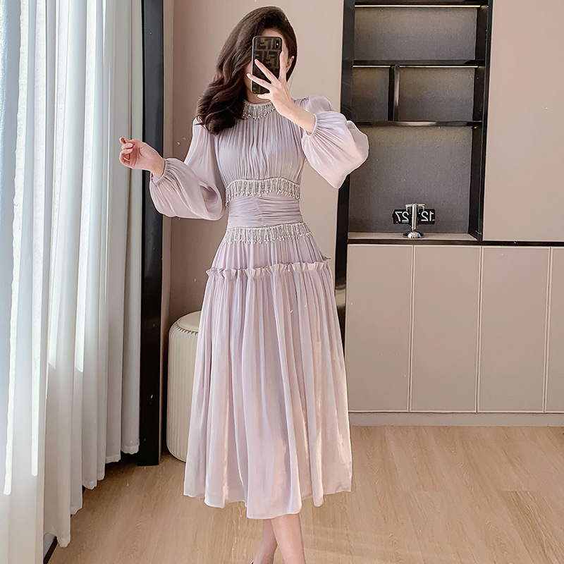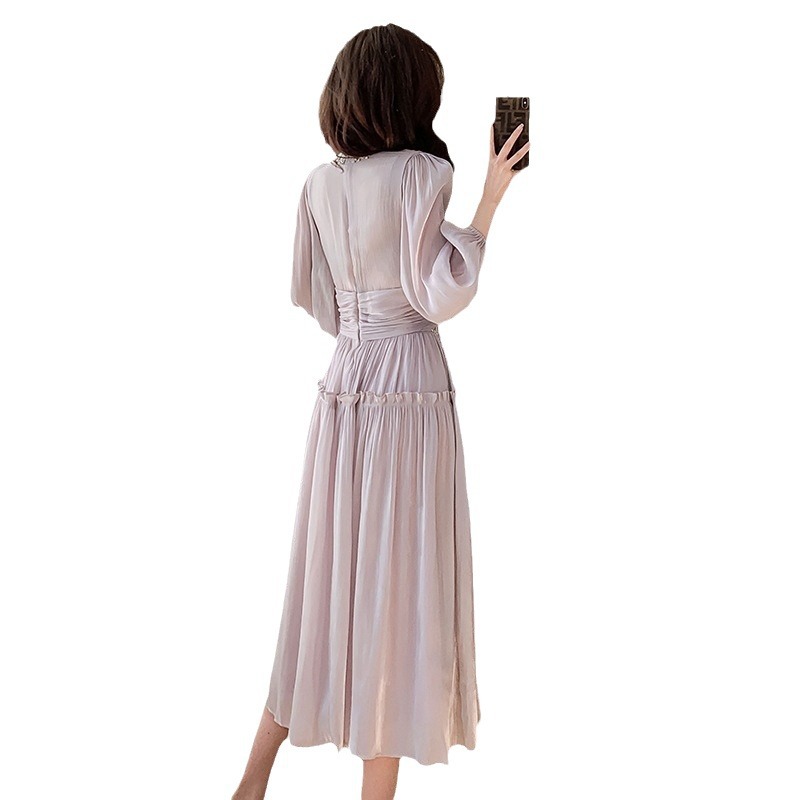 Women's Fashion Tassel Pleated Bright Silk Dress
