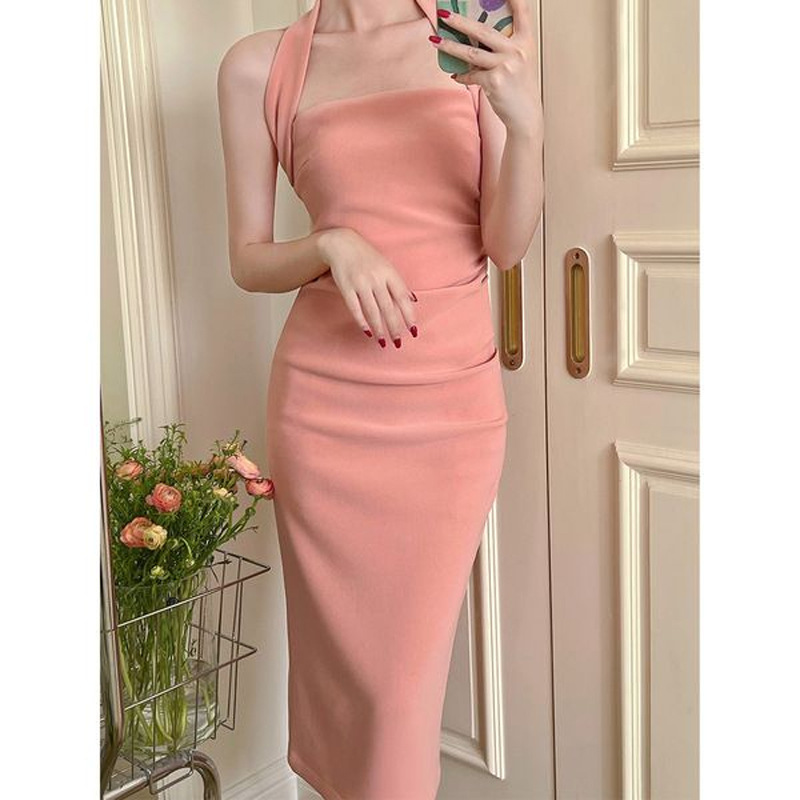 Women's French-style Three-color Halter Off-the-shoulder Pure Desire Dress