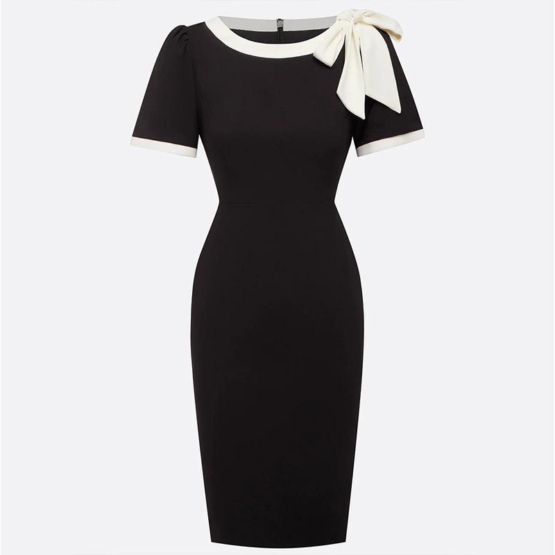 Make a stylish statement at any warm-weather event with this flattering color-block dress, featuring a chic bow knot detail at the neckline. The 35% cotton 65% polyester blend offers the perfect balance of breathability and shape retention for all-day comfort.