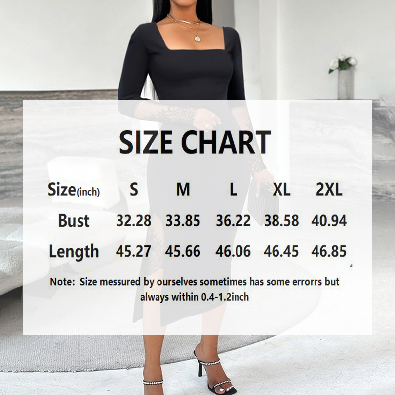 Command attention with our Women's Sexy Square Neck Lace Dress, where daring design meets sophisticated elegance. This stunning bodycon midi dress features a dramatic square neckline with delicate lace paneling, a figure-hugging silhouette, and a sensual high leg slit that creates movement and allure. The strategic lace accents add texture and visual interest to the sleek design, while the form-fitting cut accentuates your curves with refined restraint. Perfect for upscale parties, formal events, or nights out where you want to make an unforgettable impression, this dress balances bold sensuality with polished sophistication.