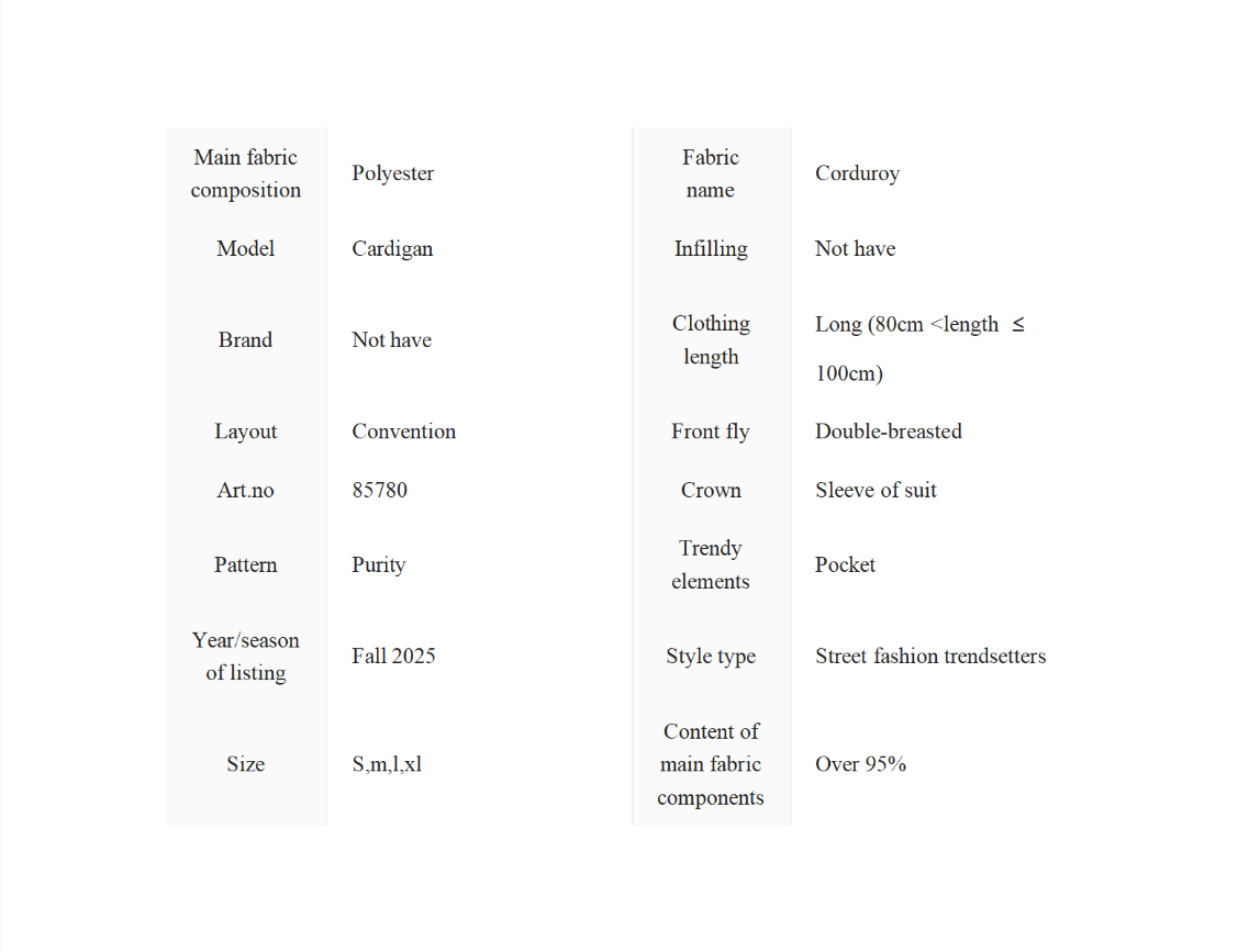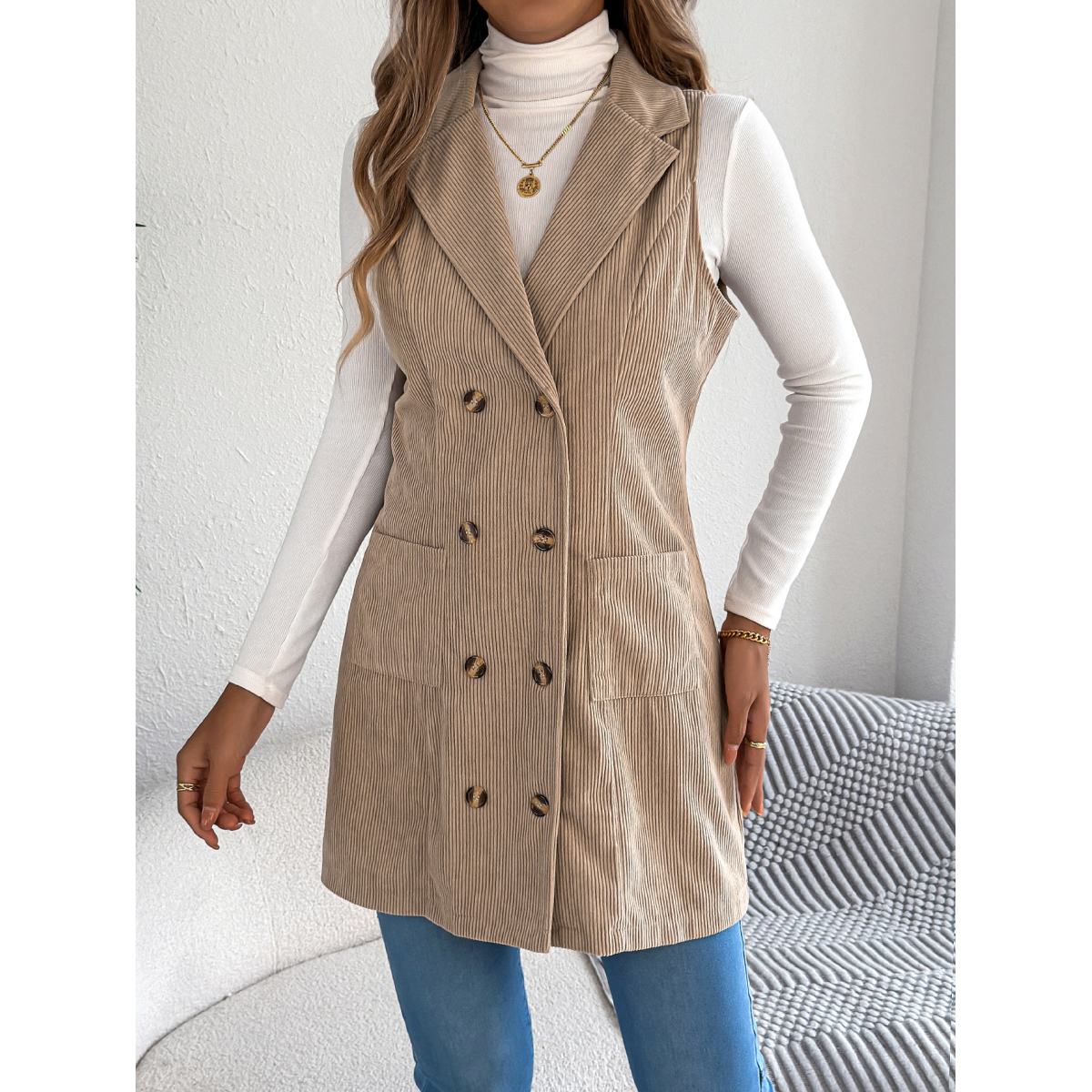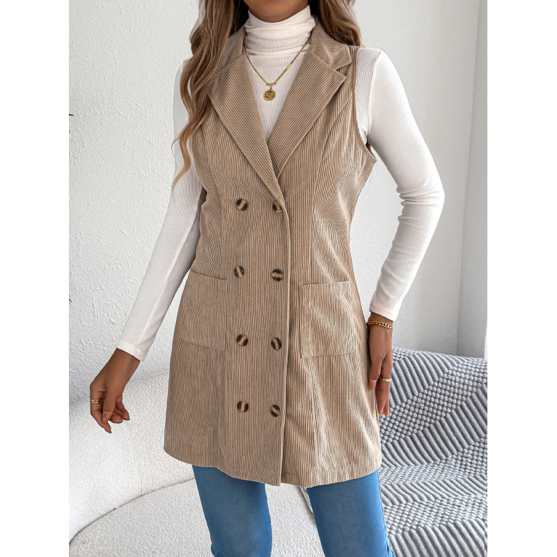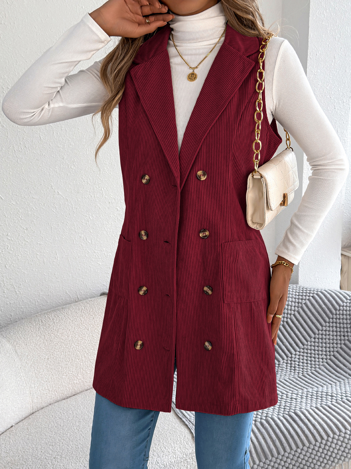 Women's Solid Color Double-Breasted Pocket Corduroy Long Vest Jacket