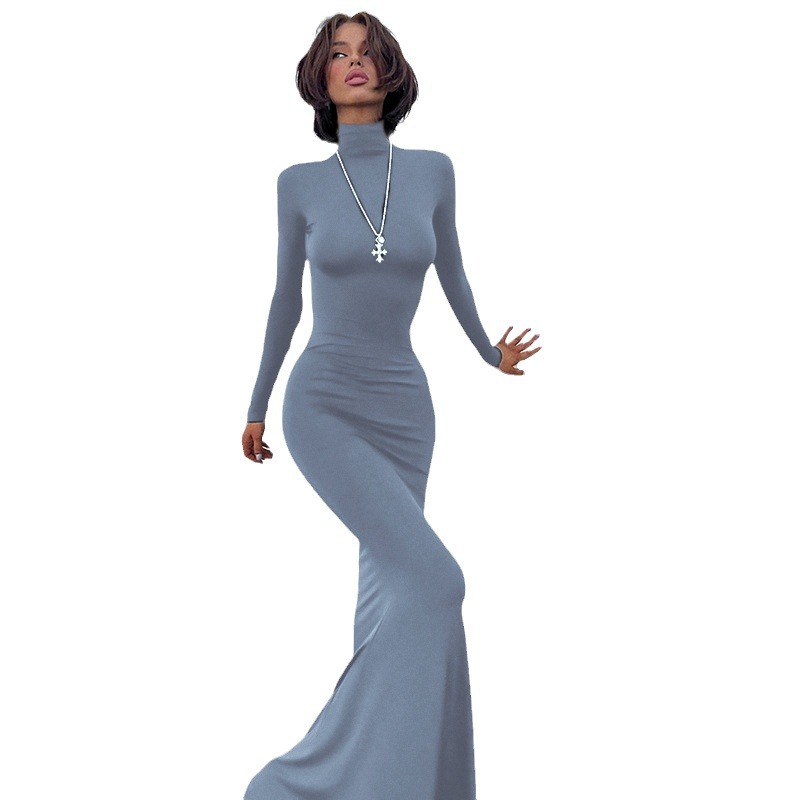 Women's Turtleneck Long Sleeve Waist-tight Sheath Dress