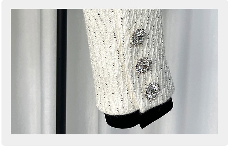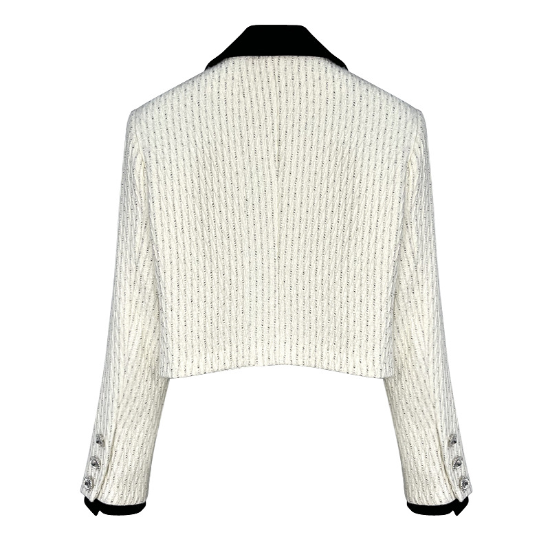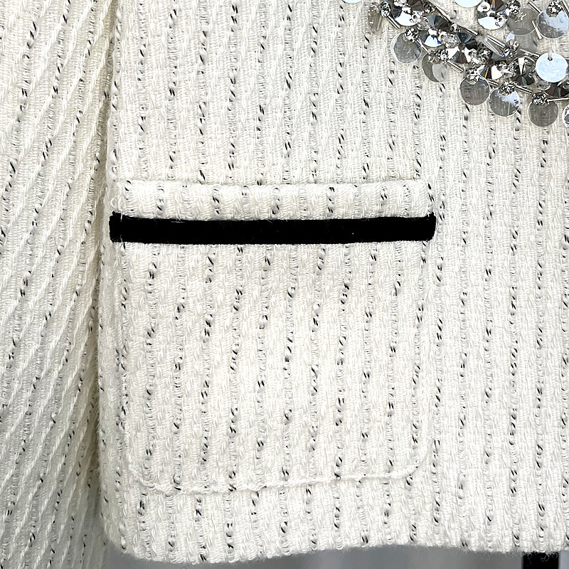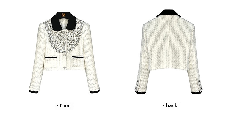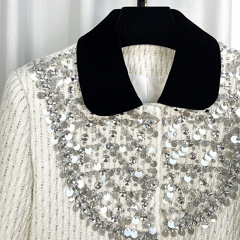 Women's White Exquisite Rhinestone Short Chanel Coat